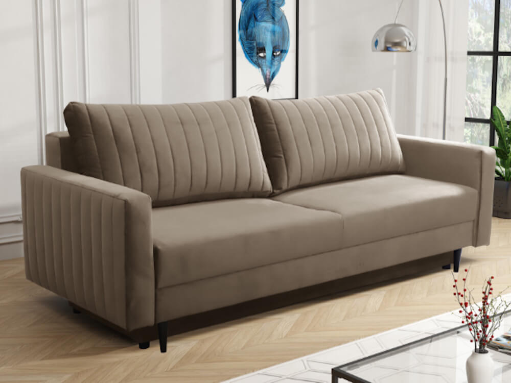 Canapeaua GLOBAL290 va fi partenerul perfect pentru relaxare, divertisment sau lucru, deoarece combină confortul, caracterul practic şi designul modern. Este tapiţată în ţesătură albastră sau bej, astfel încât să o puteţi amplasa într spaţiu, unde cu siguranţă va ieşi în evidenţă. Datorită funcţiei de extindere, o poţi transforma cu uşurinţă într-un pat confortabil, pe care îl veţi aprecia atunci când veţi avea o vizită neaşteptată. Are de asemenea un spaţiu de depozitare practic, unde puteţi păstra pături sau alte articole de sezon. Caracterul unic al canapelei este conferit de picioarele din lemn în culoarea fagului şi de cusăturile decorative de bun gust. Arcul de tip Bonel este responsabil pentru şezutul confortabil. GLOBAL290 – o canapea care va satisface toate aşteptările dumneavoastră!